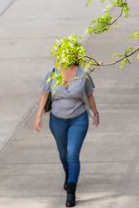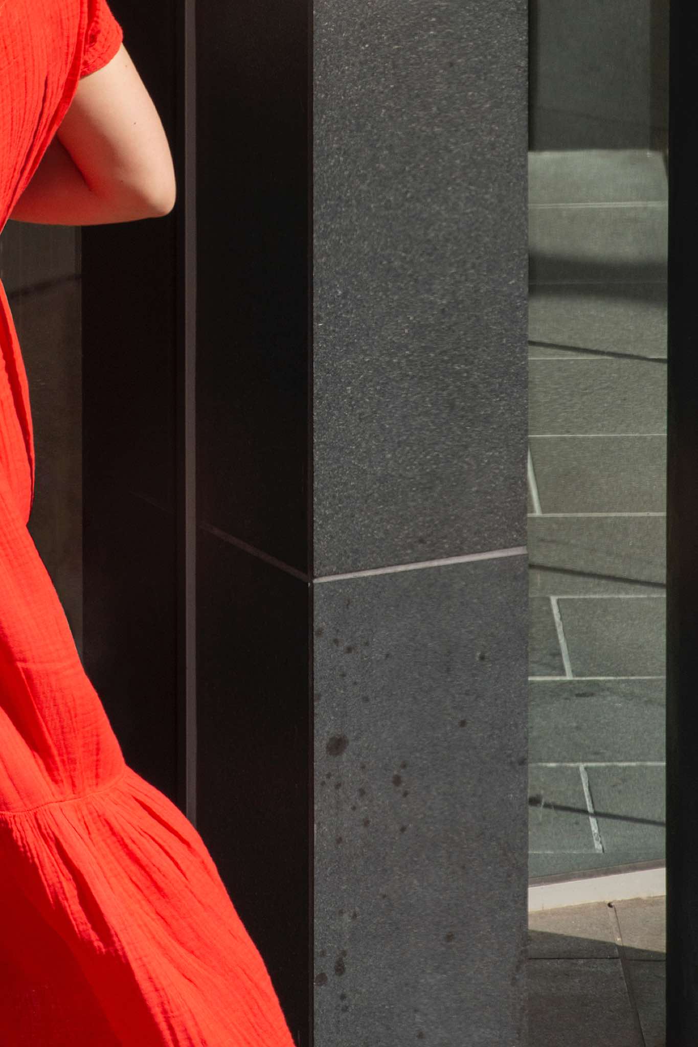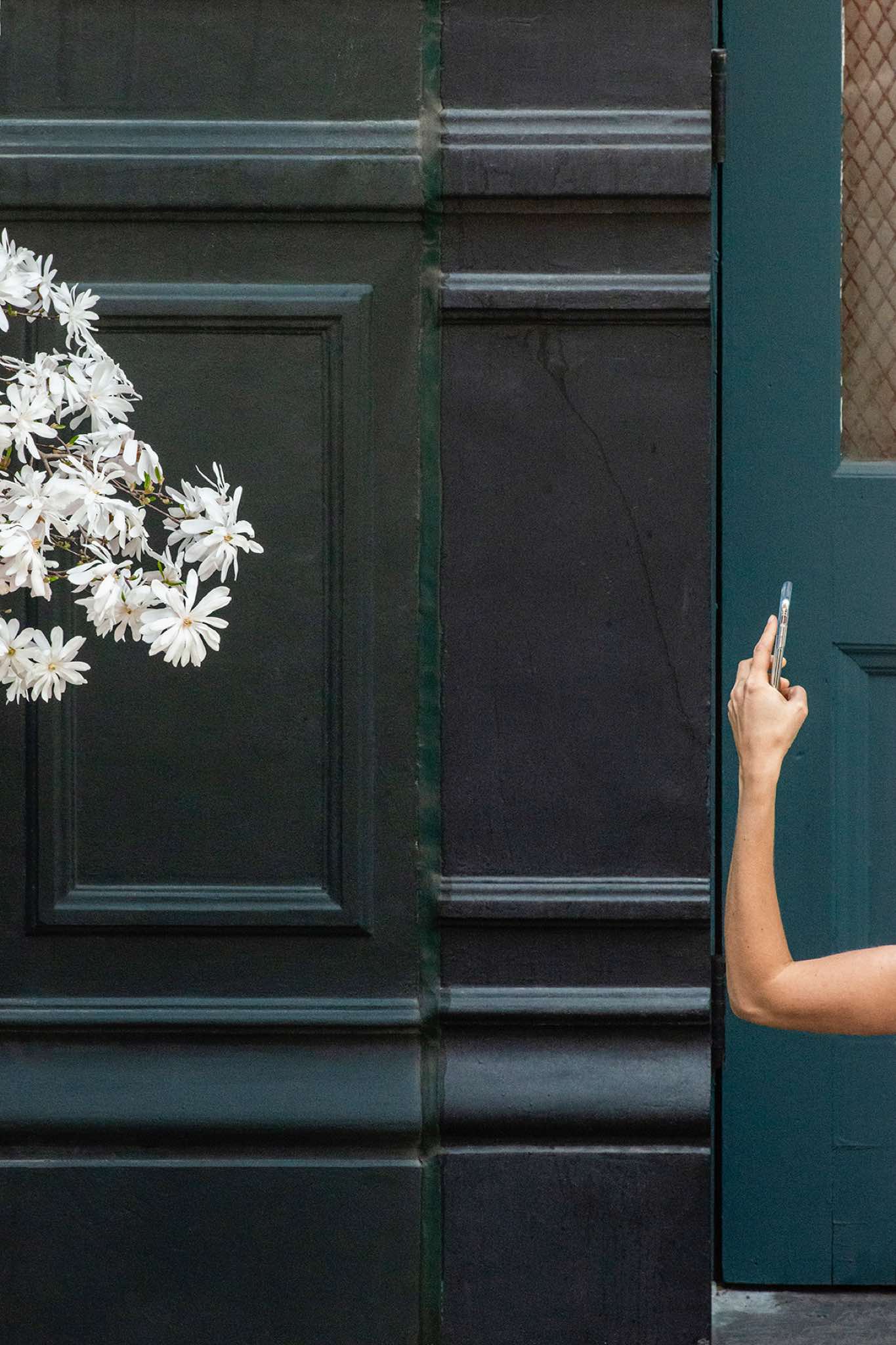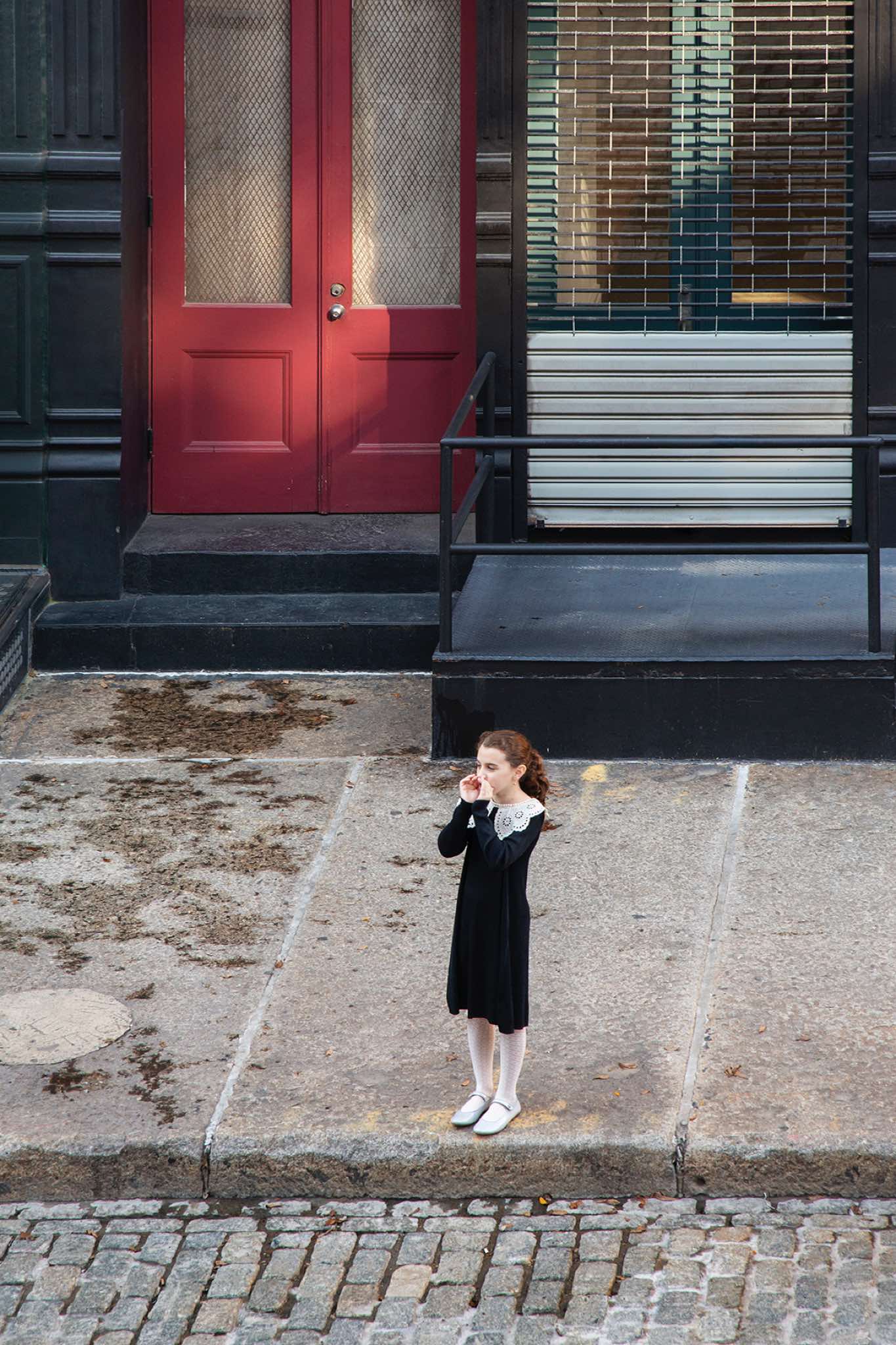 A Beautiful Day, an ongoing series created through necessity, is a new extension of The Neighbors. Although I thought I was done with staring out windows and photographing anonymous lives, as pandemic-related shutdowns multiplied, I was sequestered in my second-floor studio, unable to travel with my camera or schedule shoots. Very few people wandered the neighborhood, but those who did caught my attention, just as the apartment dwellers formerly had. Instead of seeing across the street into the interior lives of my subjects, I now looked down to the street and photographed lives lived on the public street and sidewalk. My aim remains the same: to capture those seemingly banal behaviors in which we all engage to reveal the wonder, mystery, and beauty of them.