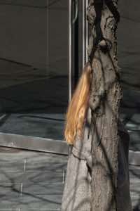 In the early 2000s I began a series of photographs, The Neighbors, after a glass-box building was constructed across the street from my studio. The floor-to-ceiling glass façade walls of the apartments afforded an unfettered view of the quotidian activities of my neighbors. I was stringent about not revealing anyone’s identity; I did not photograph these subjects as specific, identifiable personages but as representations of humankind, of all of us. A turned-away head, a back against a window, legs under a table – the images are of those simple, private scenarios and transitory actions that portray an unconscious humanness both truthful and tender.