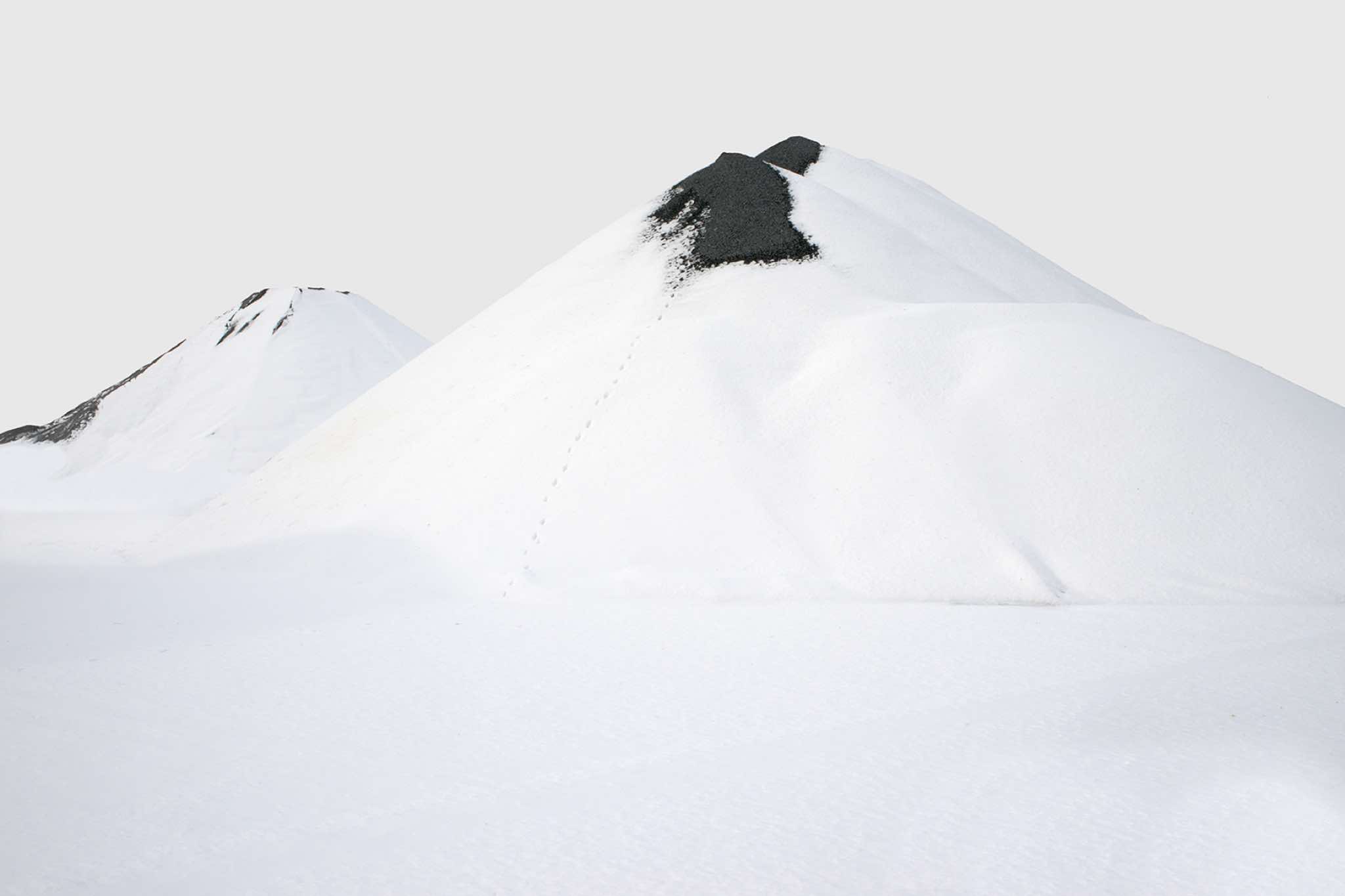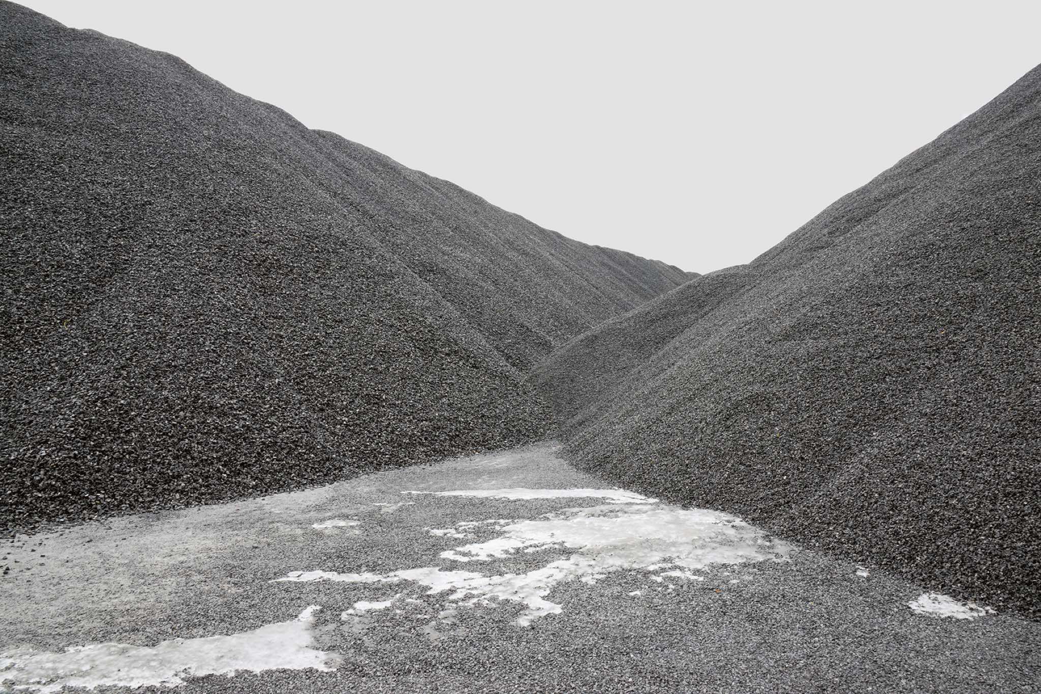 For years I drove by a local gravel yard and watched the landscape and horizon continually change. Enormous machines dug into the mountains, extracted boulders to be smashed into aggregate that would then be conveyed to create mounds and hills on the yard. This gravel would then be loaded onto enormous trucks and carted away, making room for the next miniature mountain range to be established. At times, this Sisyphean process went on 24 hours a day. I would photograph a fifty-foot gravel hill one day and the next it would be gone, replaced by one of a different configuration and form.