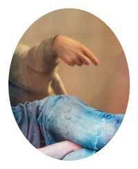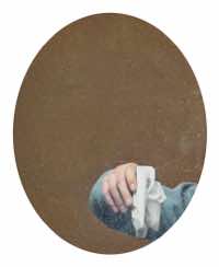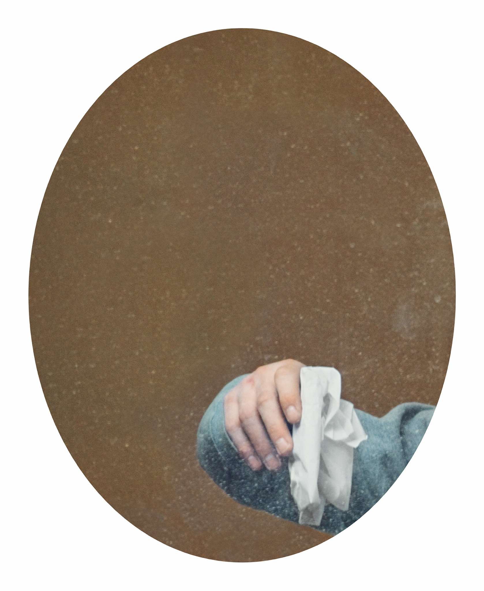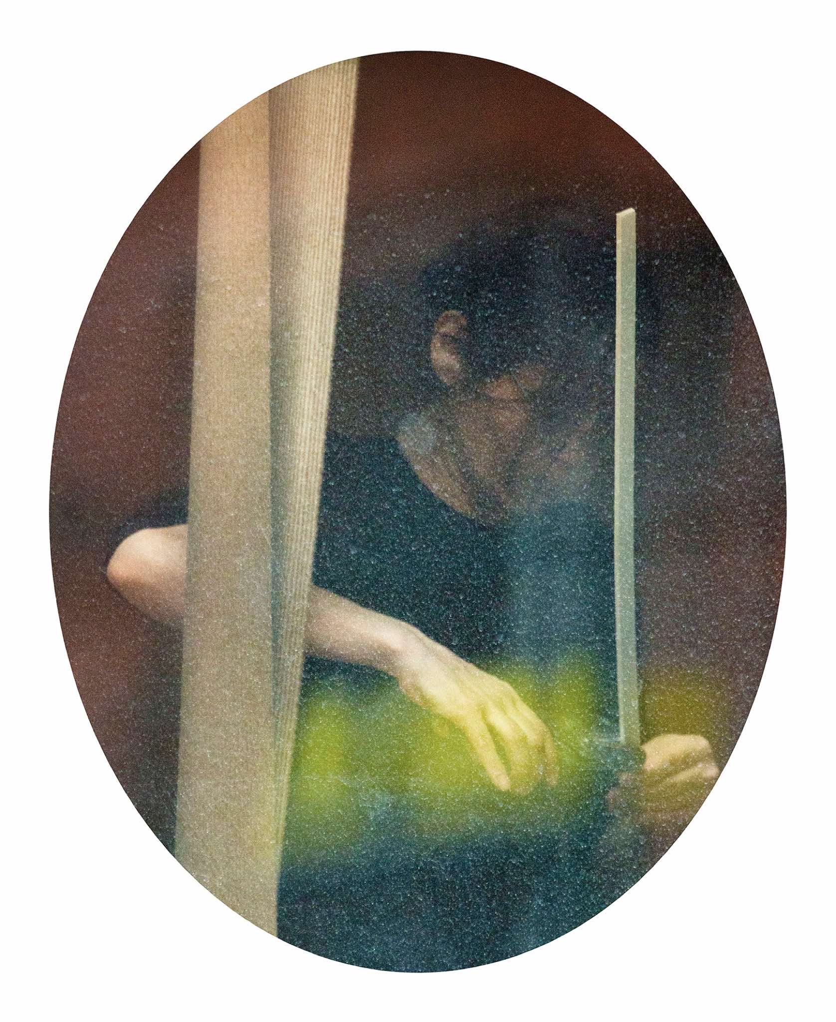 I’ve used an oval as the framing format to signify a window without referring to traditional rectangular shapes. Also, the oval references the convention used in Old Masters portraiture to designate status, an attribute not often tied to those who work with their hands. Within this designated space I seek to portray eloquence in the face of brittle conditions, of the beauty and delicacy of a hand in motion hovering over an unseen machine or of a body in exhausted repose.