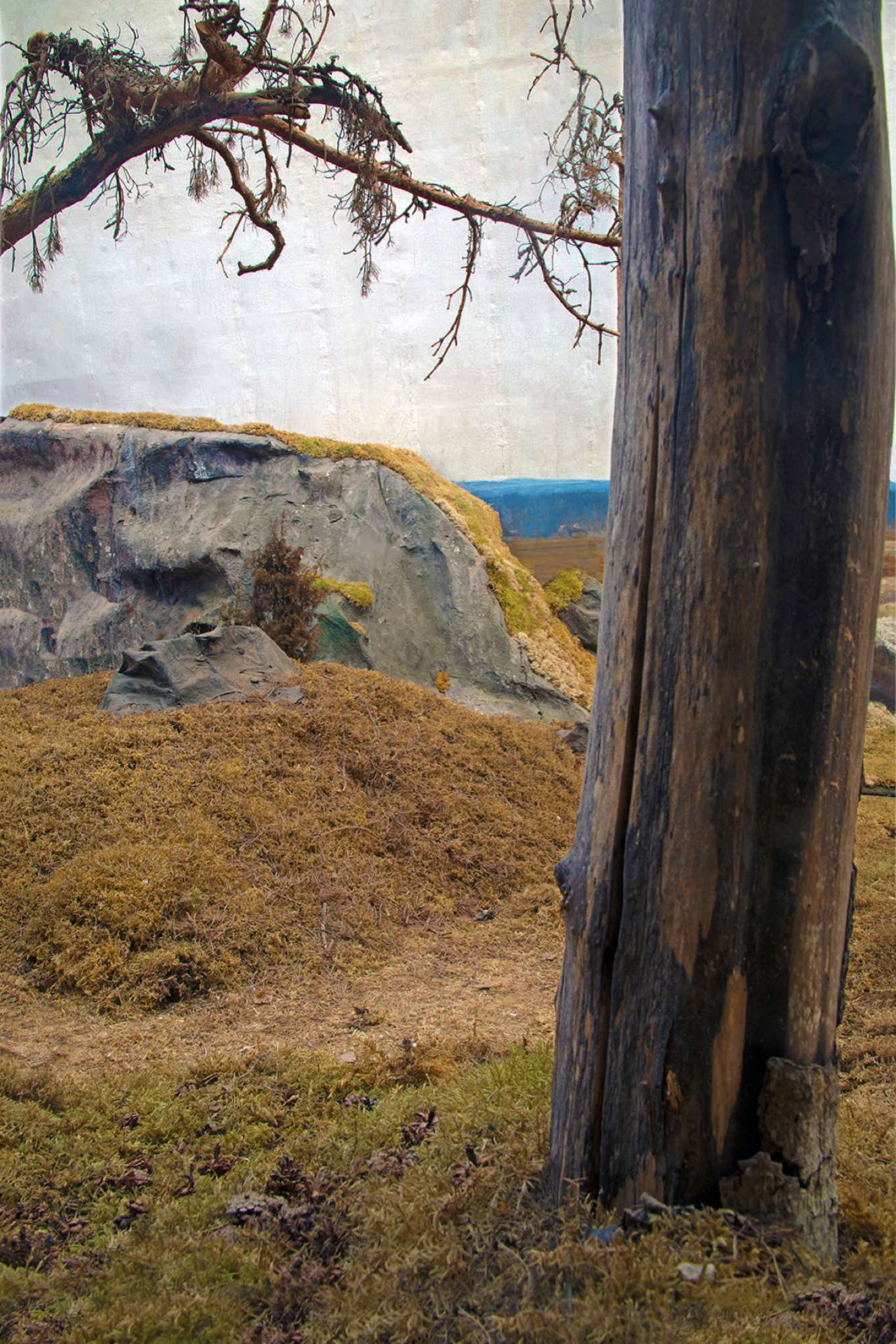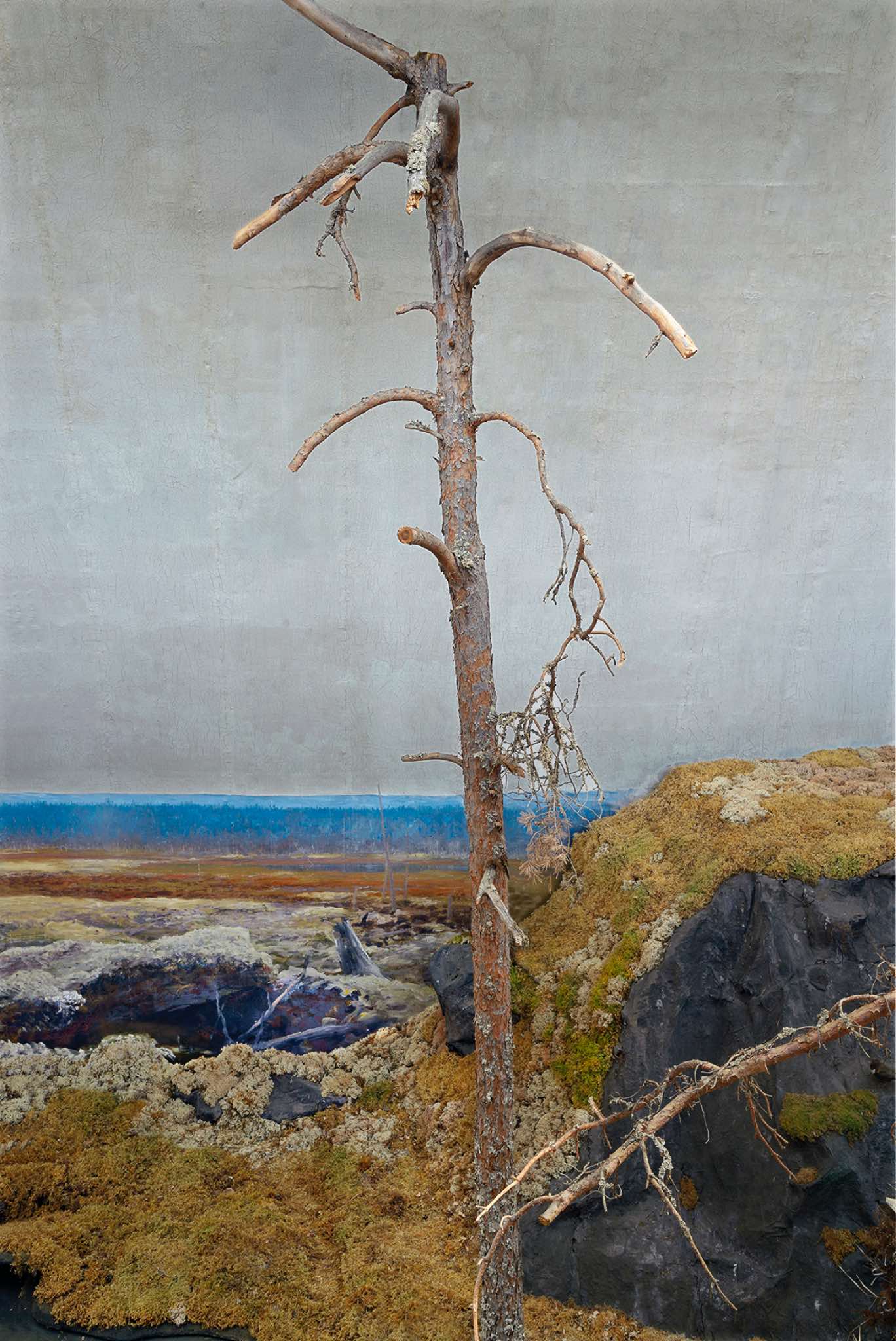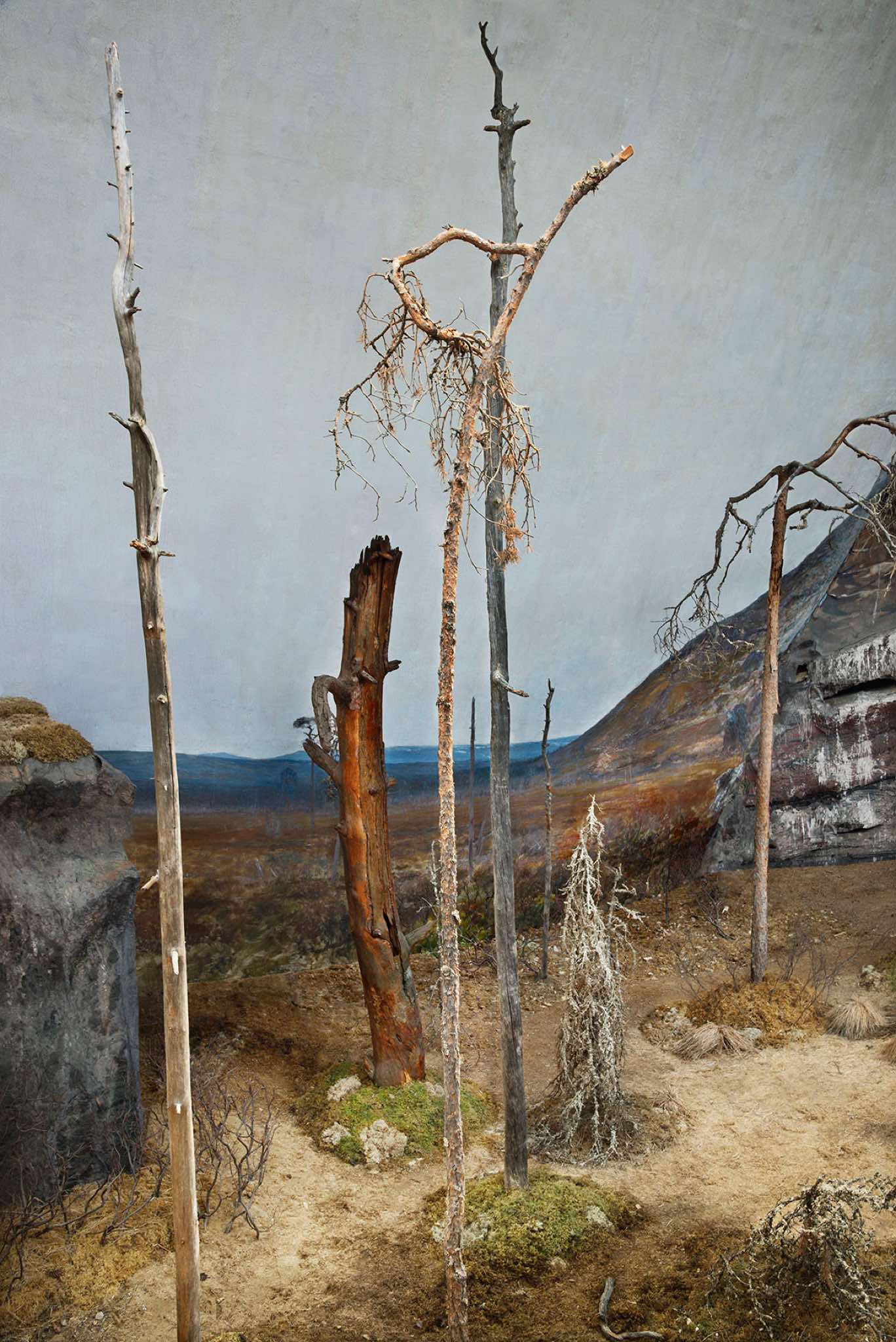 Photographed in a cavernous, life-size cyclorama in Sweden, using only natural light, the images from The Wilderness series are of an environment where reality is fluid and perceptions are skewed. At first, the photographs evoke 19th century landscape paintings, but as the viewer approaches, the line between photography and painting is blurred, as is the line between what is/was alive and what is artifice. In this, the photographs exemplify a reoccurring theme in my work – that quivering line between what we perceive as real or intuit is artifice.