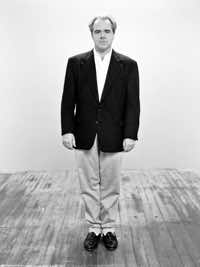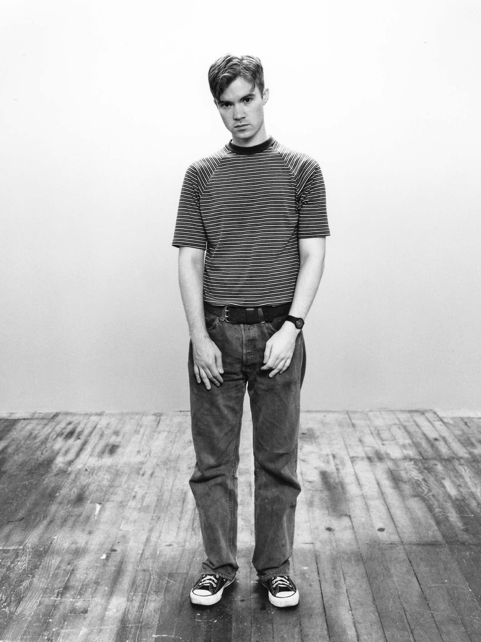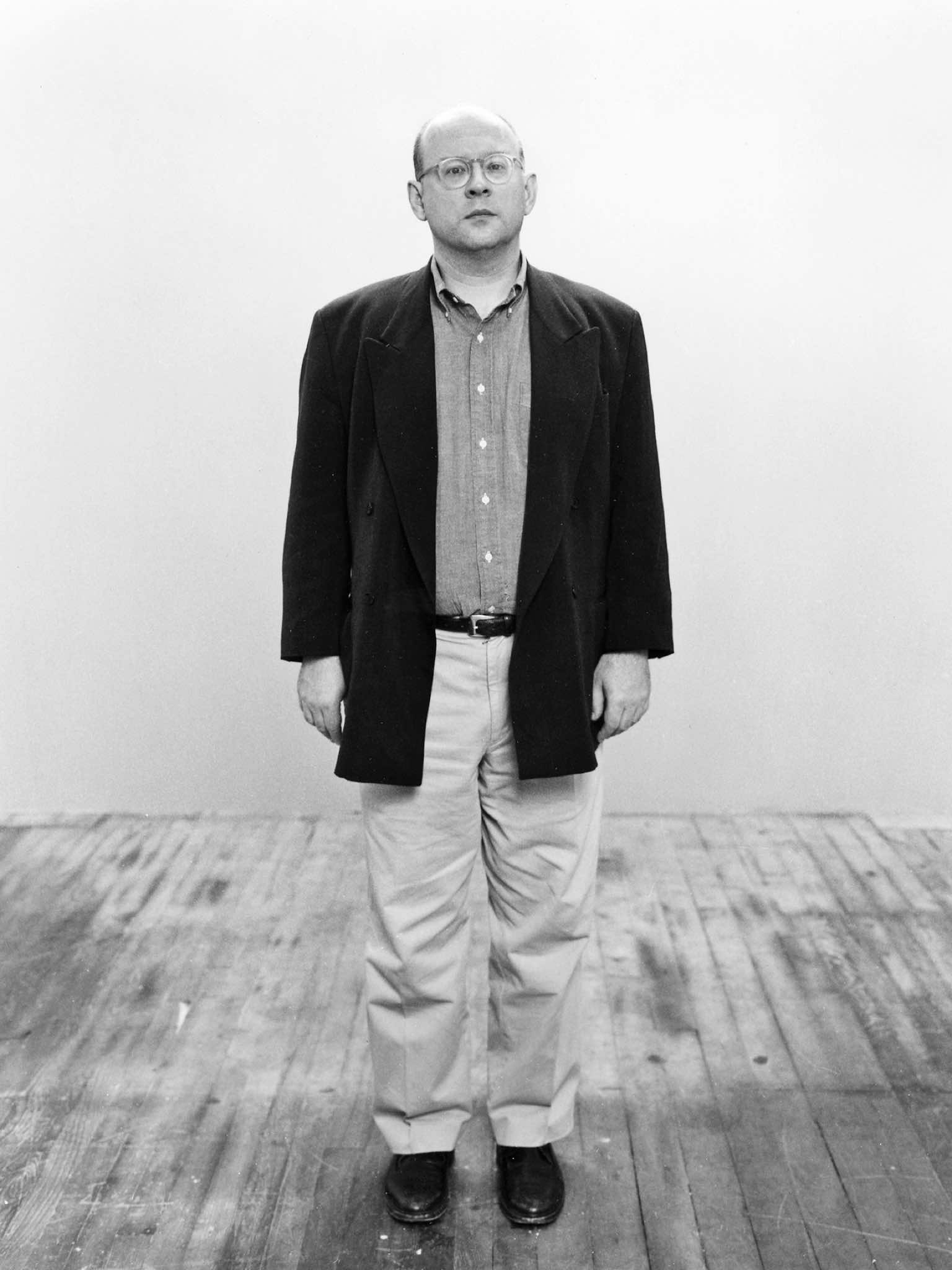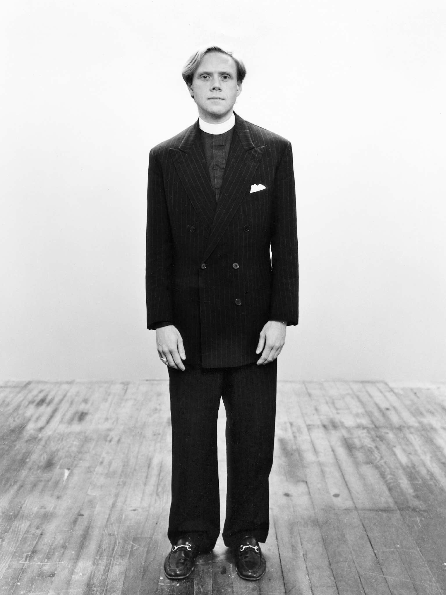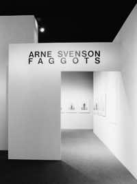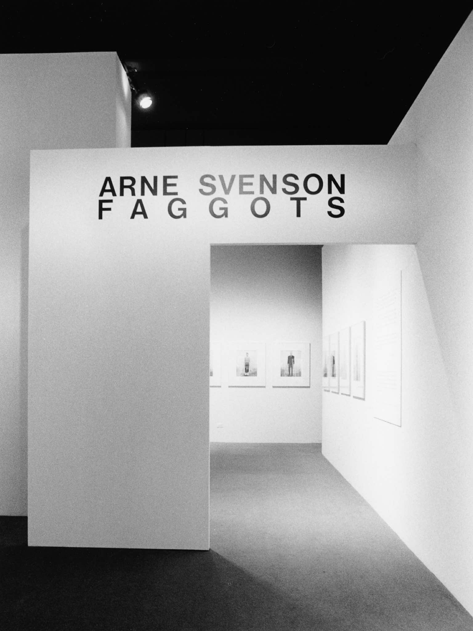 To address these questions, I invited gay men to pose in a completely neutral environment, eyes to camera, arms at the side, standing on the same mark, eliminating any nuances of lighting, focal length and pose that usually work to convey information regarding a subject’s status and interior life. The repetition of pose and setting exploits the camera’s, and the general population's, claims to objectivity, reducing the visible differences between those pictured to their most basic physical characteristics. Faggots was the basis for a one-person exhibition of seventy photographs at The Grey Art Gallery (1994) and portions of which have been shown and published extensively in the ensuing years.